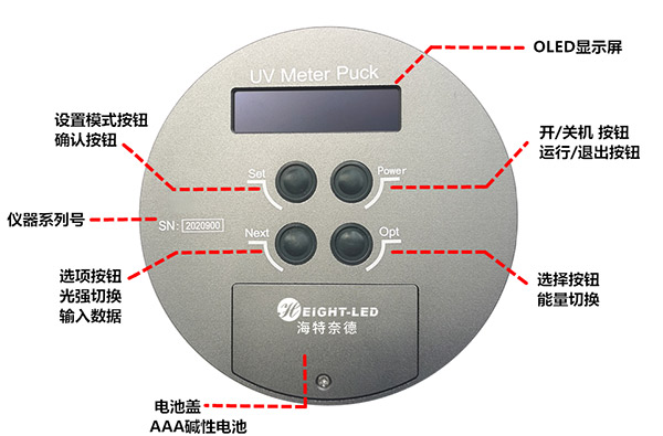光譜范圍: UV Meter Puck (四波段) 320-390nm (UVA) ,280-320nm (UVB),250-260nm (UVC), 395-445nm (UVV)