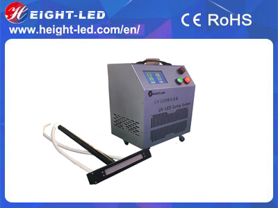 The UV-LED curing system adopts the LED lighting method, include controller(inner water chiller) and portable uv led head,with 395nm wavelength, curing area is 20x150mm, fast curing for the uv paint and uv ink on furniture or floor,the bottom is equipped with wheels for easy movement